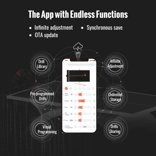 - Programmierbarer Tischtennis-Roboter: anpassbare Einstellungen simulieren Ballgeschwindigkeit, Spin, Frequenz, Flugbahn und Platzierung.